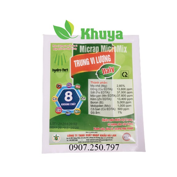 Giới thiệu Phân Vi Lượng Cao Cấp Qua Lá Micrap MicroMix TRUNG VI LƯỢNG ITALY 25gr