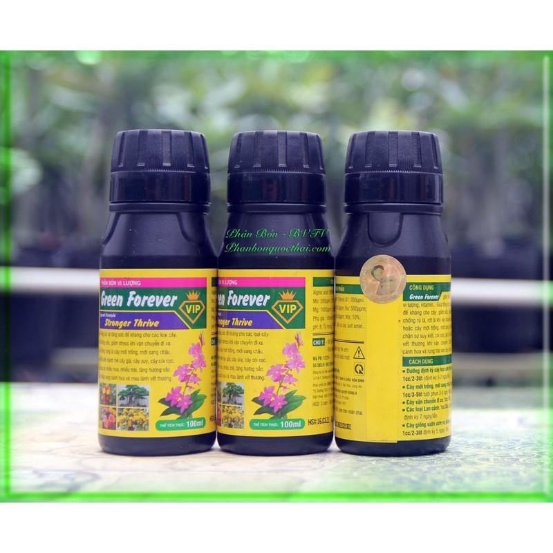 Green Forever gồm hỗn hợp nhiều vi lượng, vitamin… Giúp tăng lực và tăng sức đề kháng cho cây, giảm sốc, giảm stress, chống rủ lá, rớt lá khi vận chuyển cây đi xa hoặc cây mới trồng, mới sang chậu.