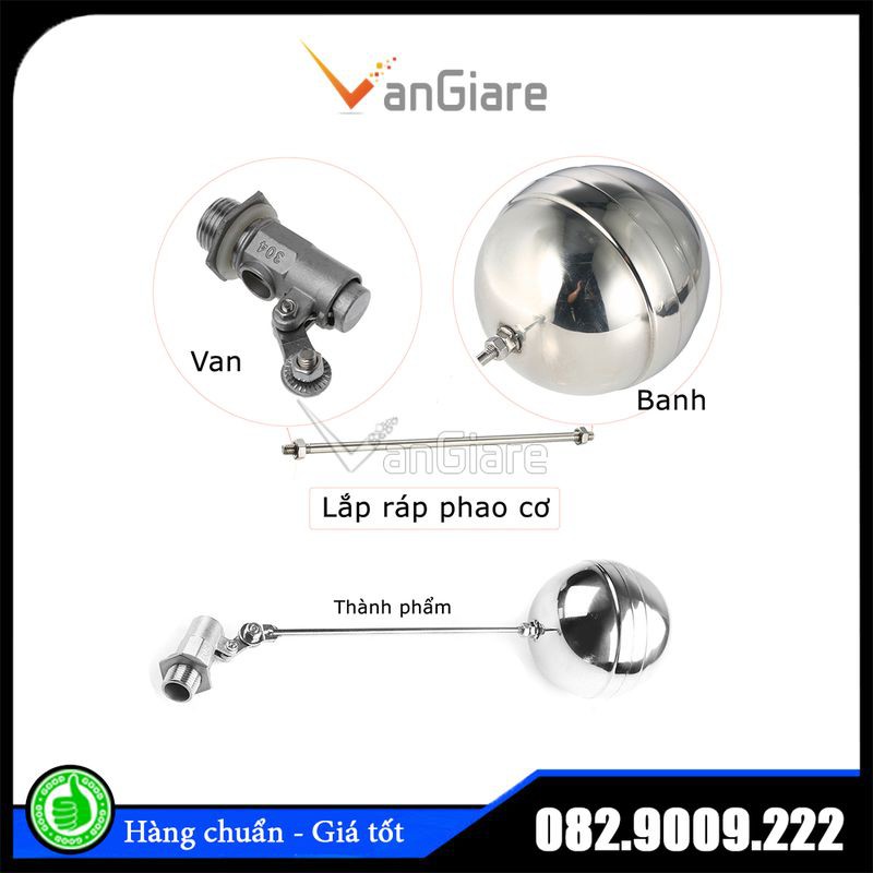 Van phao cơ tự động ngắt nước Inox 304Tên gọi khác: van phao cơ, van phao bể nước, van phao tự động ngắt nước, van phao hồ nước, van phao inox, van phao ren, van phao đài loan, float valve, van phao phi 21