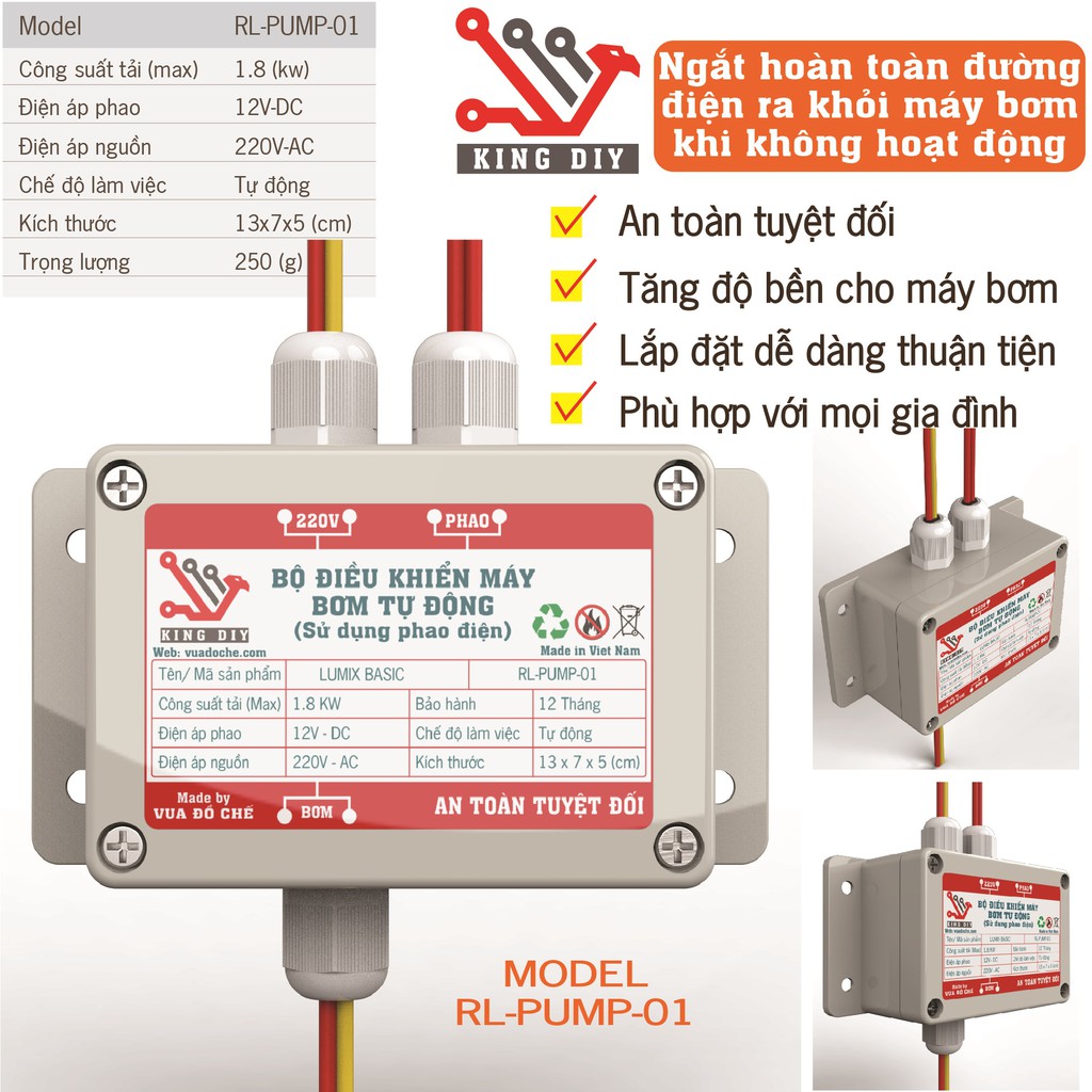 Phao điện bồn nước tự động chống giậtModel: RL-PUMP-01