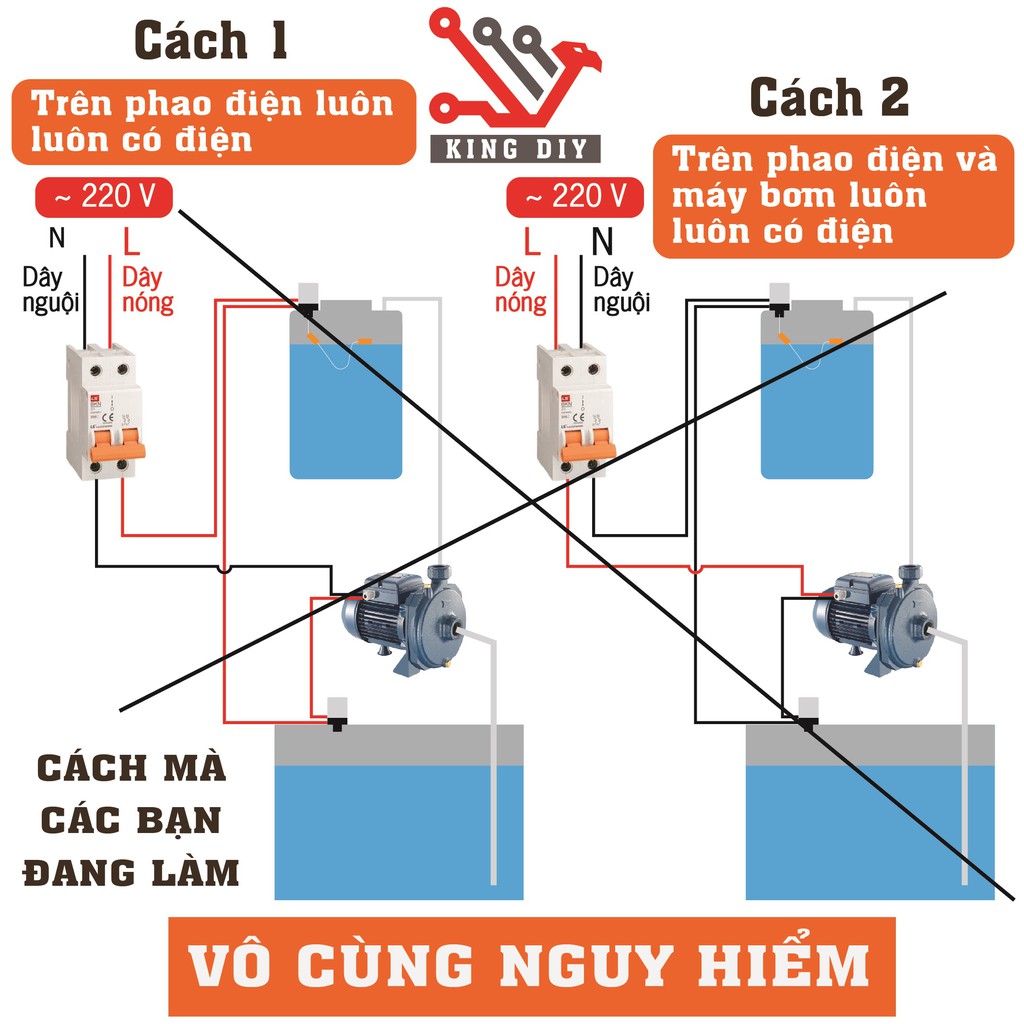 Nó đảm bảo sự an toàn tuyệt đối cho nguy cơ điện giật chết người khi các bạn sử dụng Phao điện để điều khiển Máy bơm nước tự động.