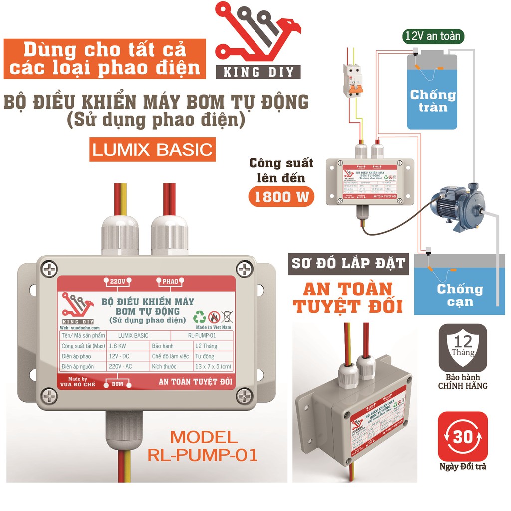Bộ điều khiển máy bơm nước tự động sử dụng phao điện chống giật Phao điện bồn nước tự động chống giậtModel: RL-PUMP-01