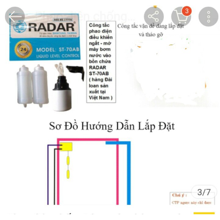 PHAO ĐIỆN RADARChất liệu:Phao điện radar (Bơm Nước Tự Động) Nhựa - đồng