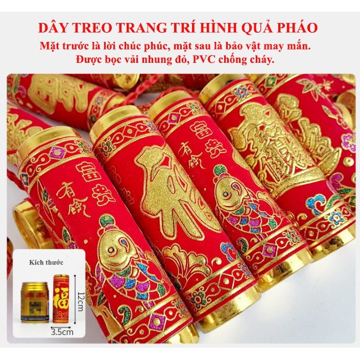 ✔ 18 tép pháo giả trang trí to, bọc nhung đỏ cao cấp, nhìn là mê.
