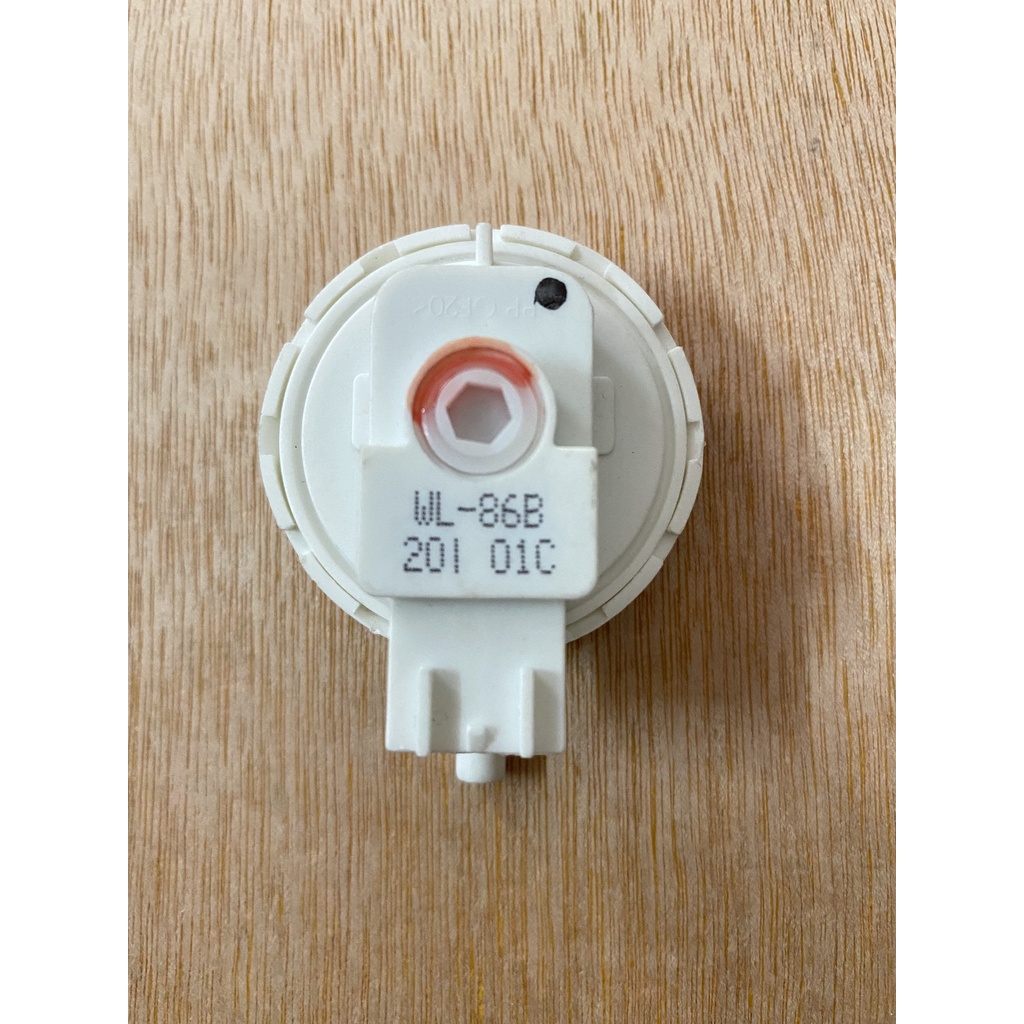 Van áp lực máy giặt (cảm biến mực nước) có chức năng cảm biến mức nước trong lồng giặt. Khi bật máy các bạn thấy máy giặt đảo mấy vòng rồi mới cấp nước vào, lúc này máy giặt đang cân trọng lượng quần áo của bạn để tính lượng nước cấp vào. Phao áp lực có tác dụng báo mức nước về cho board mạch xử lý chạy. Công tắc này làm việc thông với một ống dẫn nước bằng nhựa nối từ công tắc áp suất xuống bên hông phía ngoài lồng giặt, gần tới đáy lồng. Ống nhựa chứa không khí bên trong. Khi nước vào lồng giặt thì cũng vào ống nhựa. Khi nước dâng cao bên trong ống, nó sẽ đẩy hơi và gia tăng áp suất hơi trong ống. Khi áp suất hơi đạt đến một mức nhất định, thì nó sẽ mở công tắc áp suất