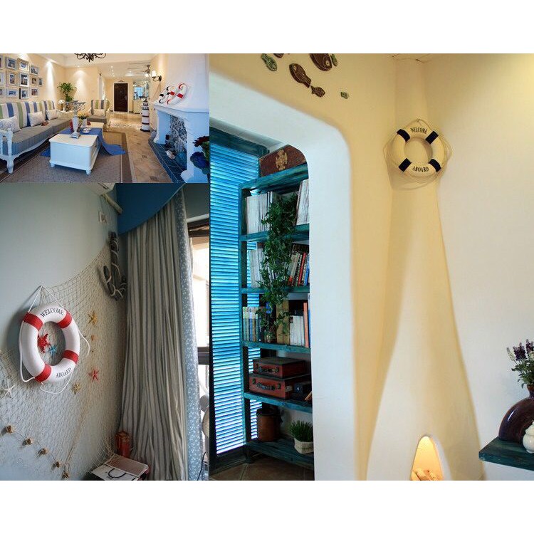 - Phao cứu sinh mini mang phong cách Santorini, phù hợp treo trang trí trong nhà, giúp căn phòng thêm thoáng mát.