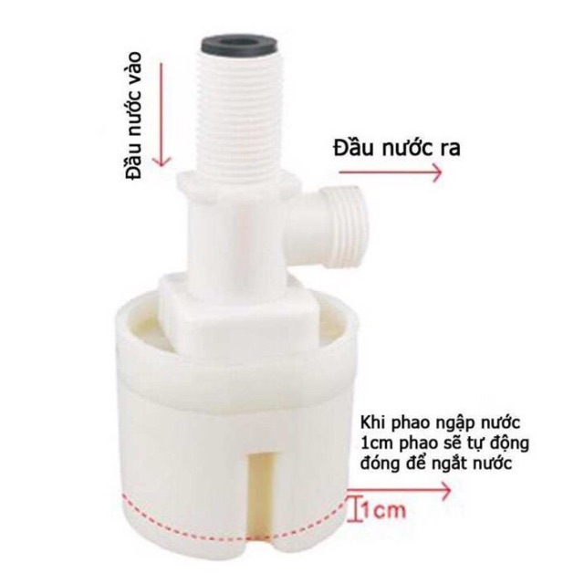 Công dụng: là van phao nhựa tự động ngắt khi mức nước dâng tới vạch giới hạn