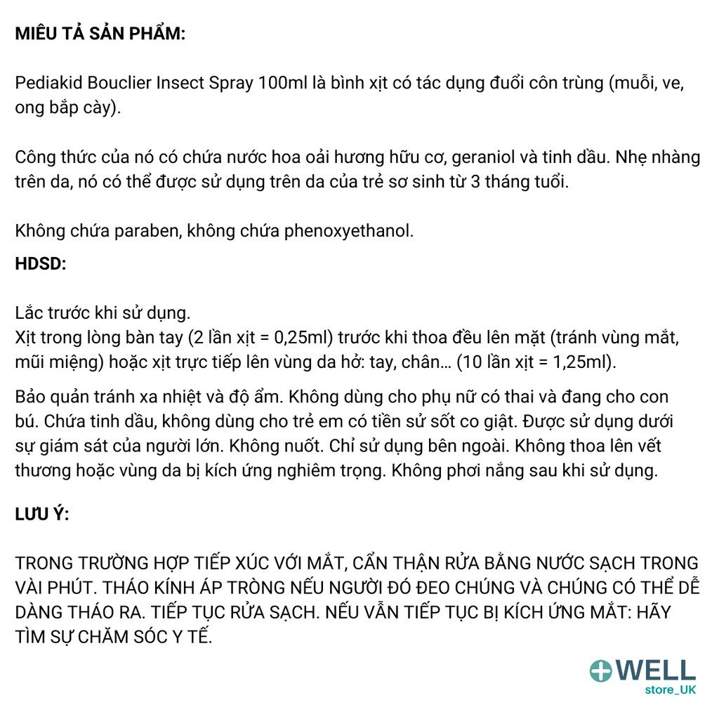Giới thiệu PHÁP- Xịt muỗi đốt, vết côn trùng cắn cho bé Pediakid bounclier insect chai 100ml