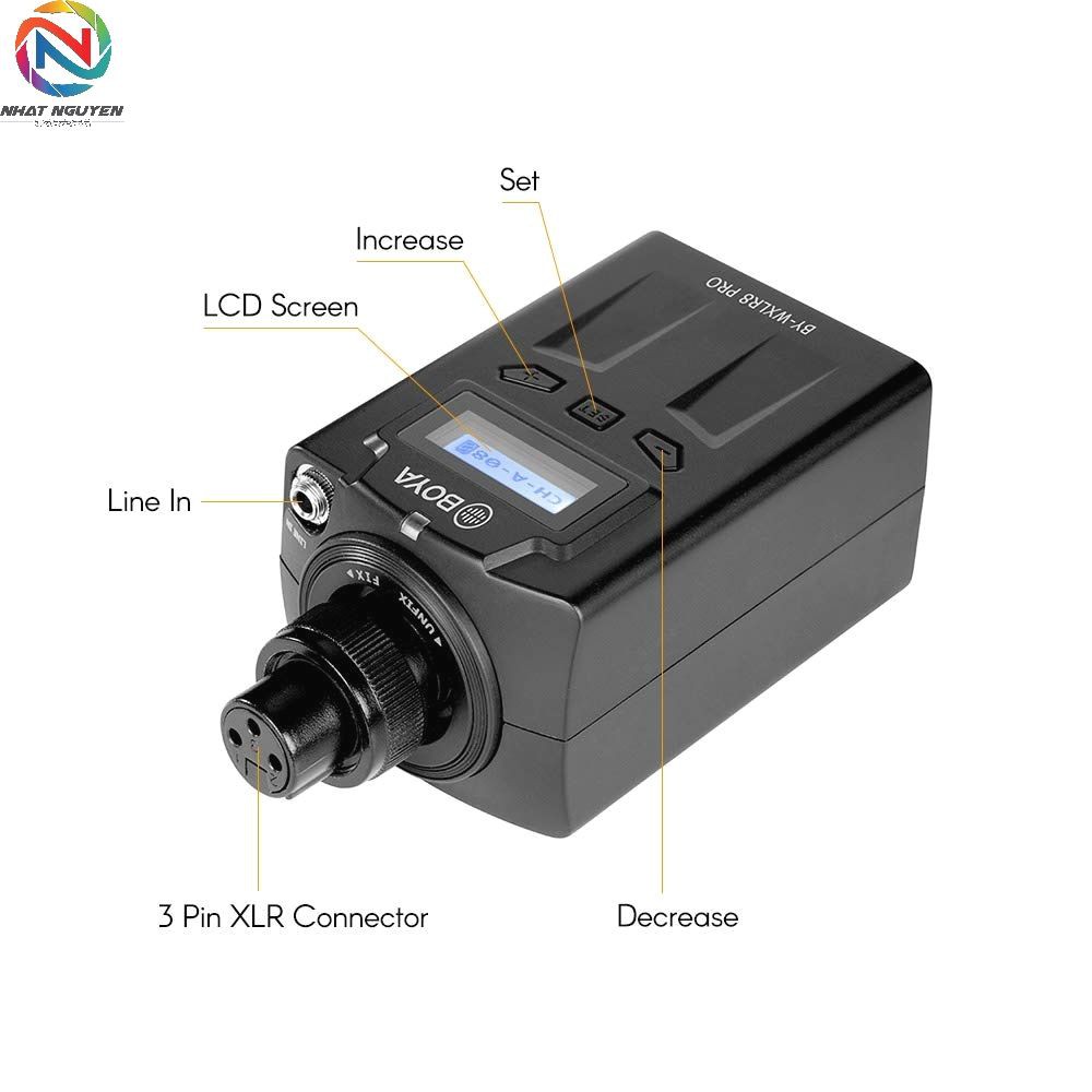 BOYA BY-WXLR8 Pro có màn hình LCD dễ đọc, băng thông RF chuyển đổi rộng, đầu vào Mic / Line và mạch kỹ thuật số, vỏ nhẹ chắc chắn, phù hợp với máy ảnh DSLR, máy quay video hoặc máy ghi âm cho các ứng dụng quay phim, ghi hình hiện trường, truyền hình quảng bá và thu thập tin tức điện tử (ENG).