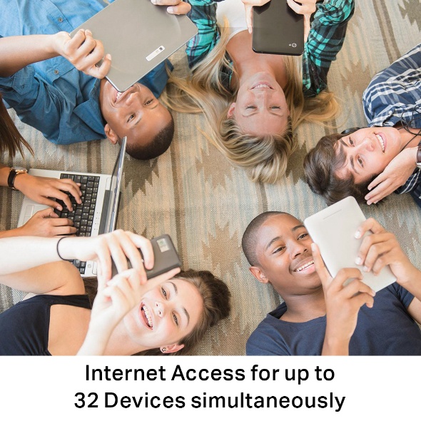 Dễ dàng chia sẻ kết nối 3G/4G với nhiều thiết bị sử dụng Wi-Fi, như điện thoại, máy tính bảng và máy tính xách tay cùng một lúc. 4 cổng LAN sẵn sàng cung cấp internet cho các thiết bị có dây như máy tính để bàn.