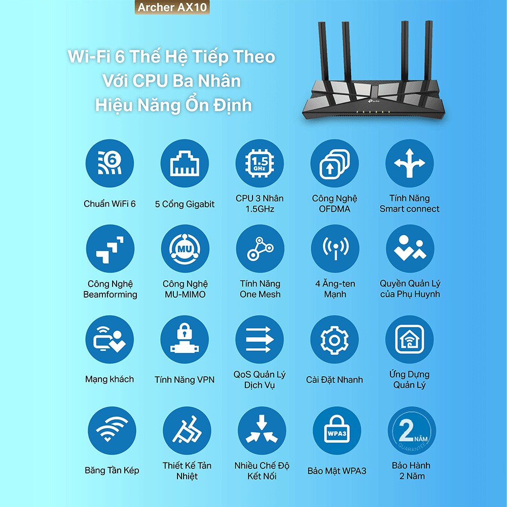 Máy tính & Laptop > Thiết Bị Mạng > Bộ Phát Wifi || Bộ Phát Router Wifi TP-Link Archer AX10 Wifi 6 Chuẩn AX 1500MpbsCòn hàng