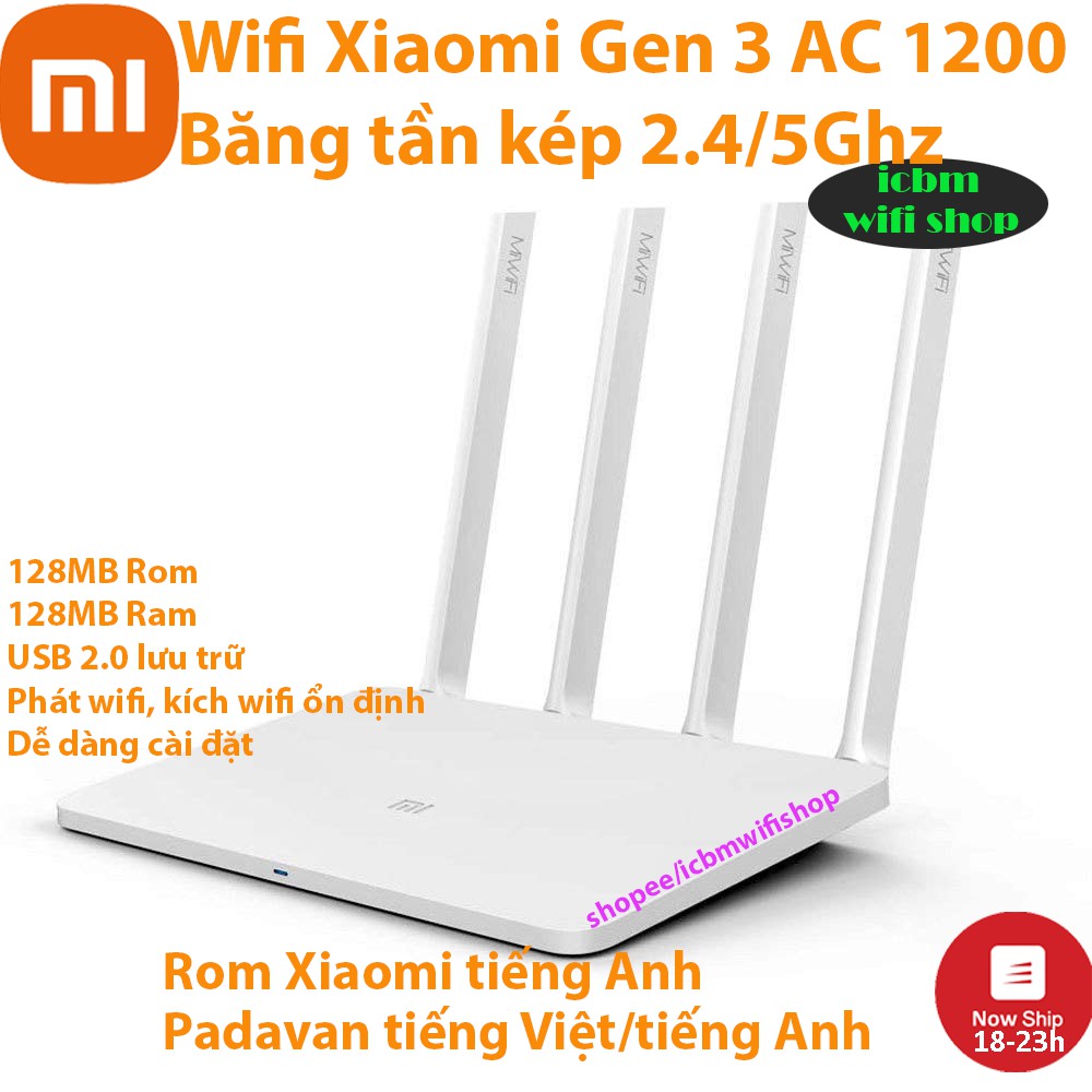 Bộ phát router wifi Xiaomi Gen 3 băng tần kép 5G & 2.4G giao diện tiếng Việt Padavan, rom Openwrt