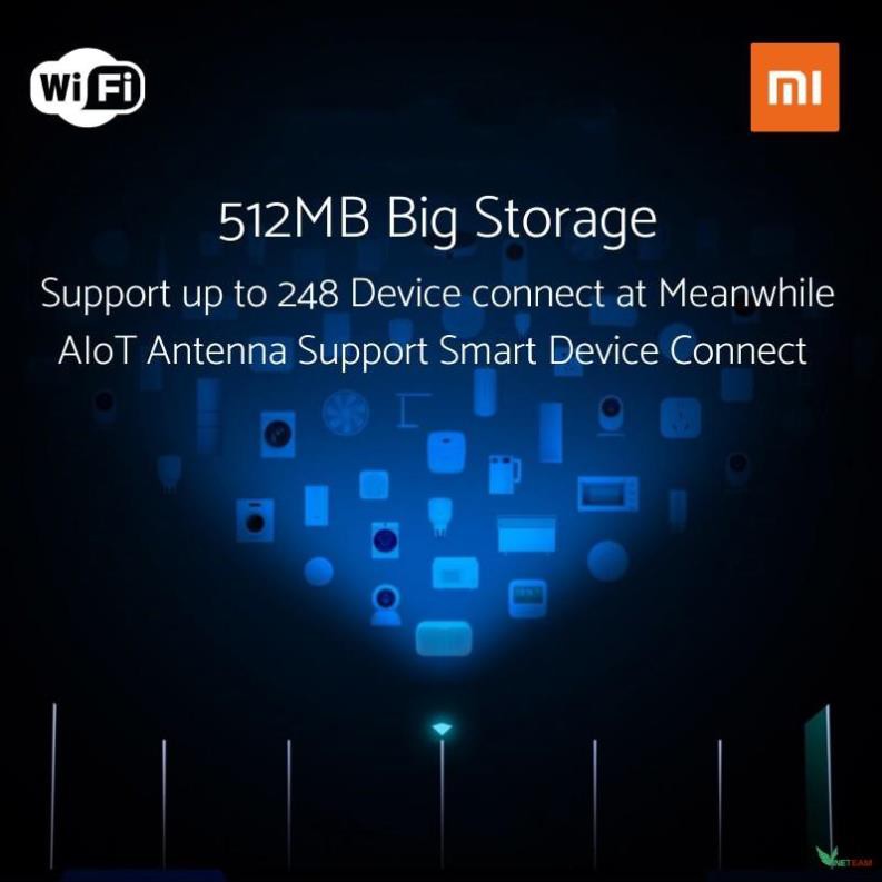 ✔ Router có 7 ăng ten, một ăng ten IoT, 1 ăng ten 2.4GHz và 5 cái còn lại là ăng ten 5GHz. Thiết bị có thể kết nối qua mạng 2.4GHz và 5GHz. Xiaomi nói rằng ăng ten AIoT hỗ trợ băng tần kép và cung cấp tốc độ lên đến 150Mbps cho thiết bị IoT. So với Mi Router AC1200, router mới nhanh hơn 155%
