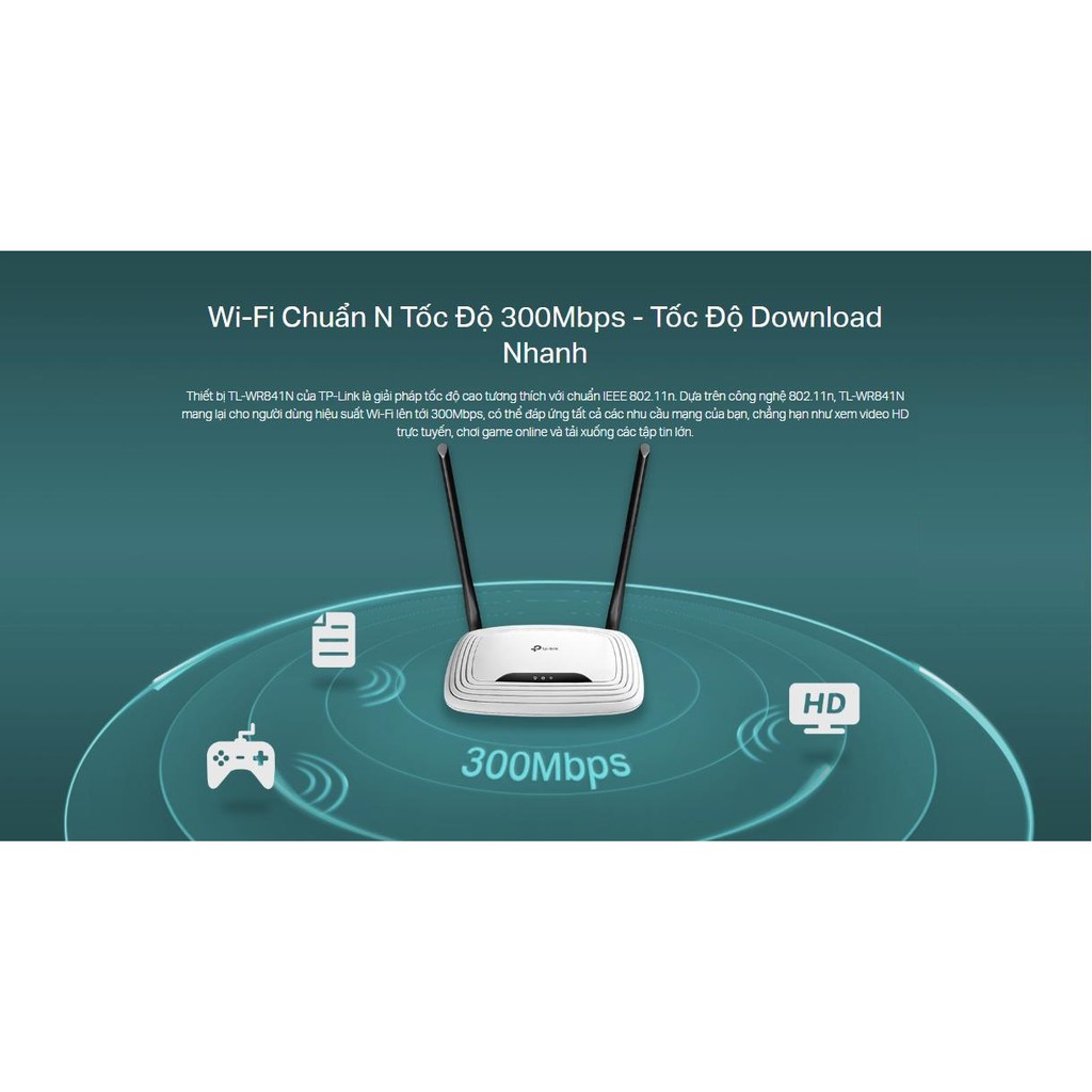 1. Đặc Điểm Bộ Phát Sóng Wi-Fi TL-WR841N Router Wi-Fi Chuẩn N Tốc Độ 300Mbps:- Wi-Fi Chuẩn N Tốc Độ 300Mbps - Tốc Độ Download Nhanh: Thiết bị TL-WR841N của TP-Link là giải pháp tốc độ cao tương thích với chuẩn IEEE 802.11n. Dựa trên công nghệ 802.11n, TL-WR841N mang lại cho người dùng hiệu suất Wi-Fi lên tới 300Mbps, có thể đáp ứng tất cả các nhu cầu mạng của bạn, chẳng hạn như xem video HD trực tuyến, chơi game online và tải xuống các tập tin lớn.