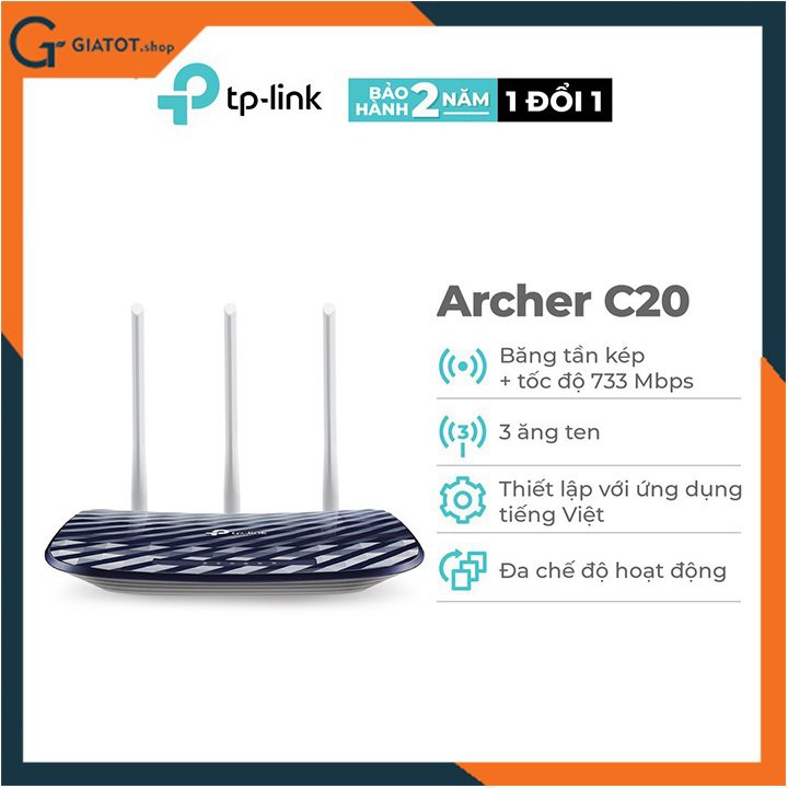 Máy tính & Laptop > Thiết Bị Mạng > Bộ Phát Wifi || Bộ phát sóng wifi băng tần kép AC750 TP-link Archer C20Còn hàng