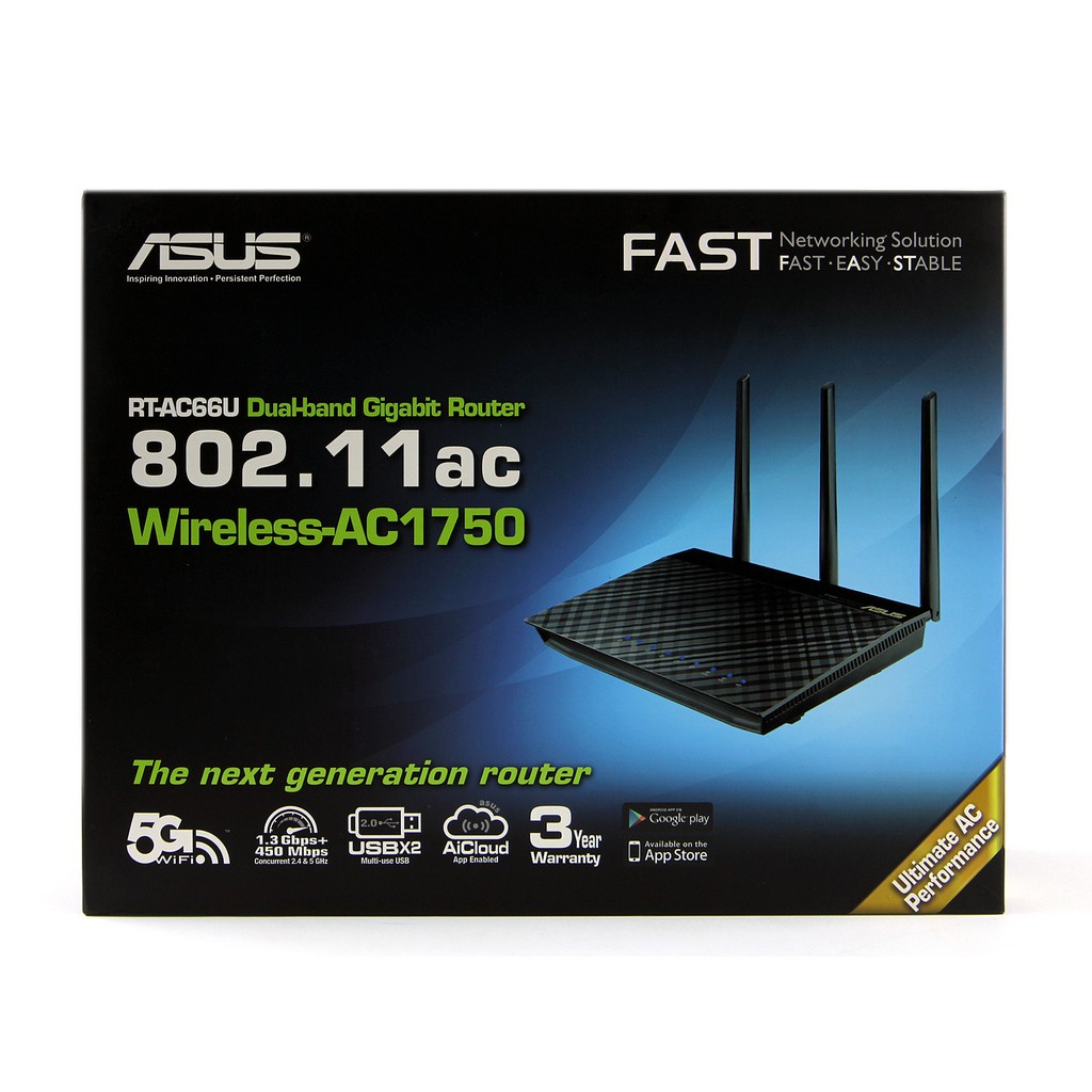 -Wireless RT-AC66U với 2 băng tần 2.4Ghz và 5Ghz hổ trợ wifi thế hệ thứ 5 802.11ac nhanh gấp 3 lần so với chuẩn 802.11n 300. Hỗ trợ 3 antene có thể tháo rời thoải mái giúp mở rộng vùng phủ sóng. Cùng 4 cổng LAN Gigabit giúp tốc độ LAN và WAN nhanh tối đa.RT-AC66U ở băng tần 2.4Ghz có tốc độ lên tới 450Mbps còn ở băng tần 5Ghz có tốc độ lên tới 1,3Gbps. Cả 2 băng tần lên tới 1,75Gbps và luôn duy trì sự ổn định. Bạn có thể duyệt web, tải file ở băng tần 2.4Ghz và có thể xem phim HD, Chơi game trực tuyến và sử dụng các ứng dụng tốt ở băng tần 5Ghz.-Công nghệ thông minh độc quyền ASUS AiRadar làm mạnh hơn các kết nối dựa trên số lượng các thiết bị kết nối vào RT-AC66U và vị trí của các thiết bị so với RT-AC66U. Việc truyền tải tốc độ cao được khuyếch đại và phát các gói tin được tối ưu hóa nhờ sự ổn định sóng và truyền tải tới bất kỳ hướng nào. ASUS AiRadar mở rộng tầm phủ sóng lên tới 150%, thích hợp cho các tòa nhà và văn phòng lớn.-Với ứng dụng ASUS AiCloud cho phép người dùng có thể truy cập vào RT-AC66U bất kỳ đâu có internet sử dụng các thiết bị thông minh dùng Android và iOS.ASUS AiCloud hỗ trợ chia sẻ di động, truyền tải và đồng bộ hóa các nội dung giữa các thiết bị khác nhau.