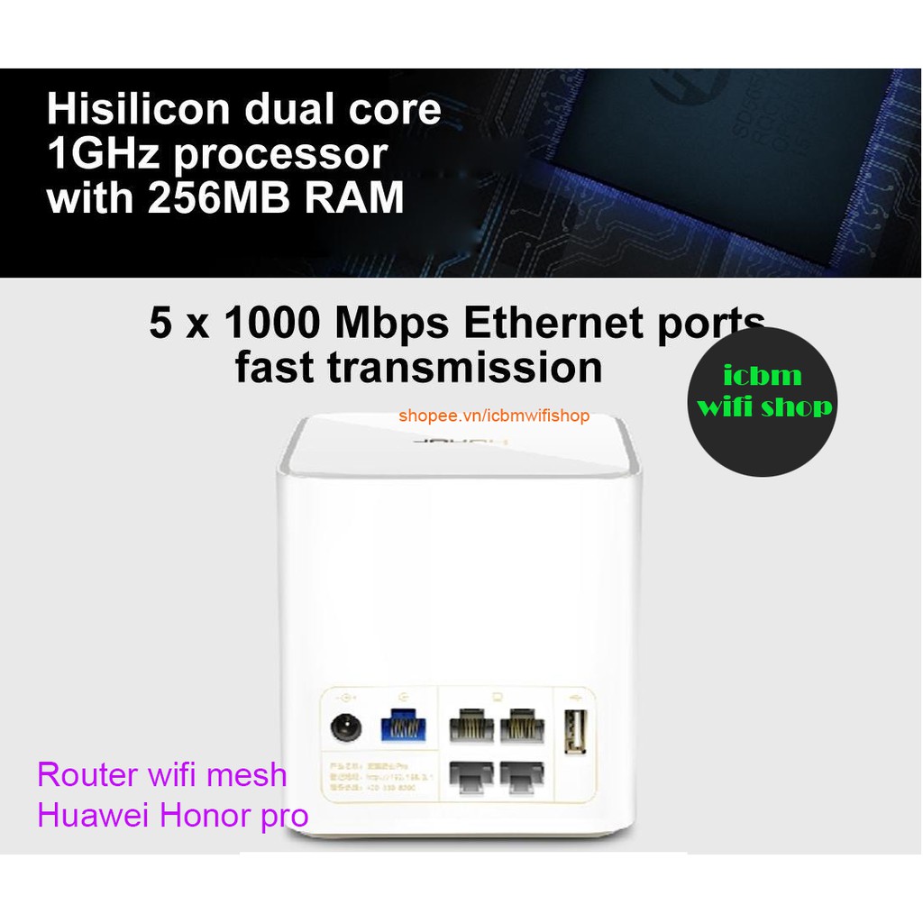 Giới thiệu Bộ phát sóng Wifi router Huawei Honor pro tốc độ cao AC1200, Lan gigabit, tính năng Mesh nhiều router
