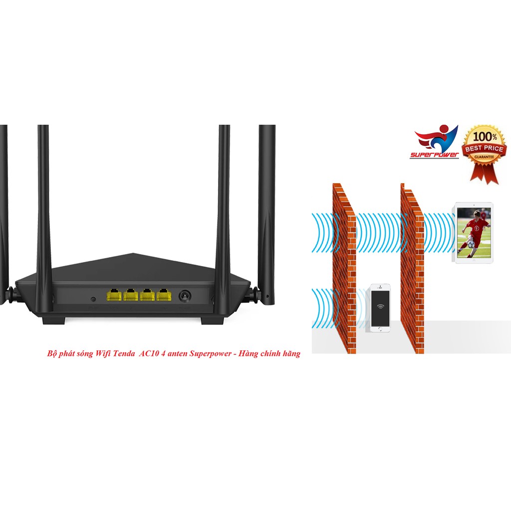 [Mã 254ELSALE giảm 7% đơn 300K] Bộ phát sóng Wifi Tenda AC10 4 anten Superpower - Hàng chính hãng