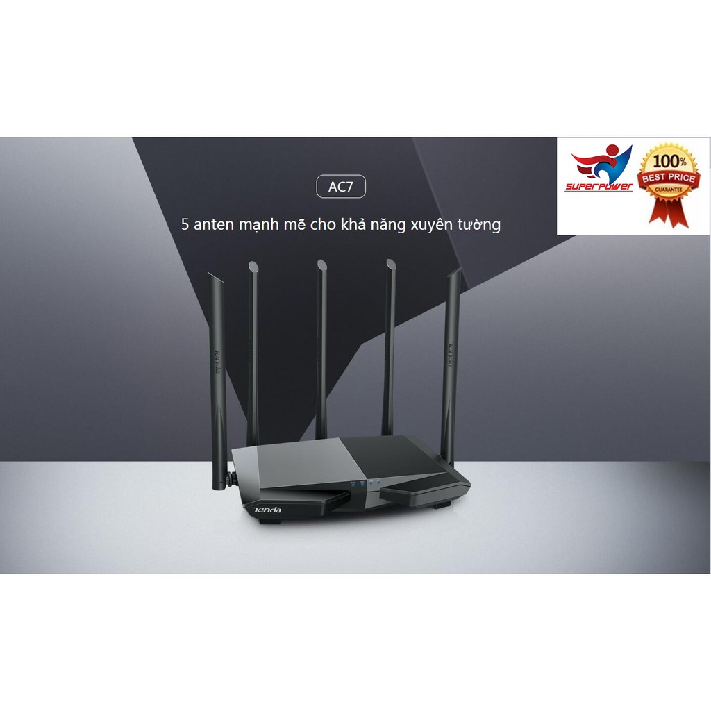 [Mã 254ELSALE giảm 7% đơn 300K] Bộ phát sóng Wifi Tenda AC7 5 anten Superpower - Hàng chính hãng