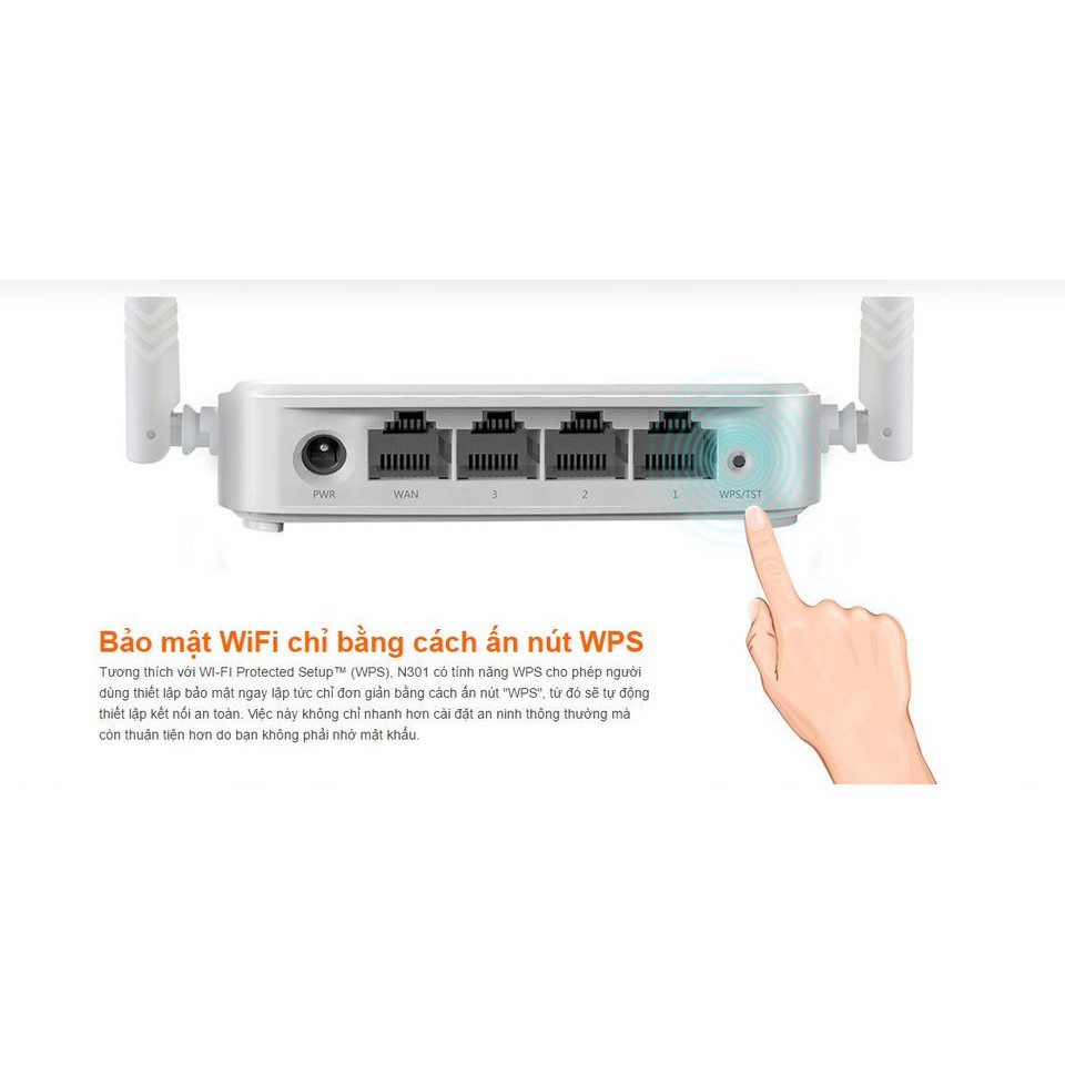 Bộ phát wifi không dây tenda n301 chuẩn N 300Mbps - 2 anten– Tốc độ không dây lên đến 300Mbps, rất thuận lợi để sử dụng cho các ứng dụng nhảy cảm như xem video HD trực tuyến