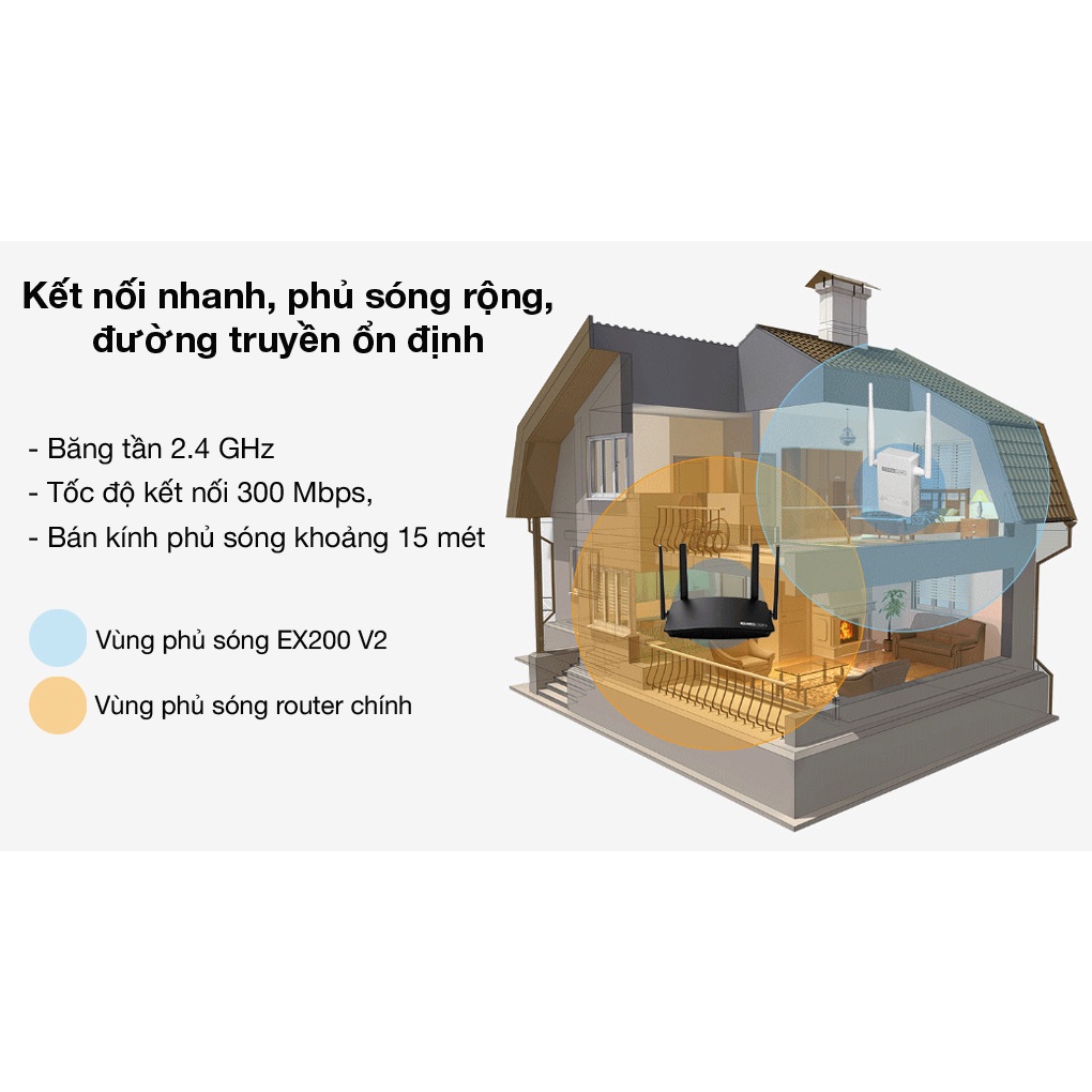 Bộ phát sóng wifi Totolink EX200 có chức năng repeater - có cổng Lan chính hãng BH 24T