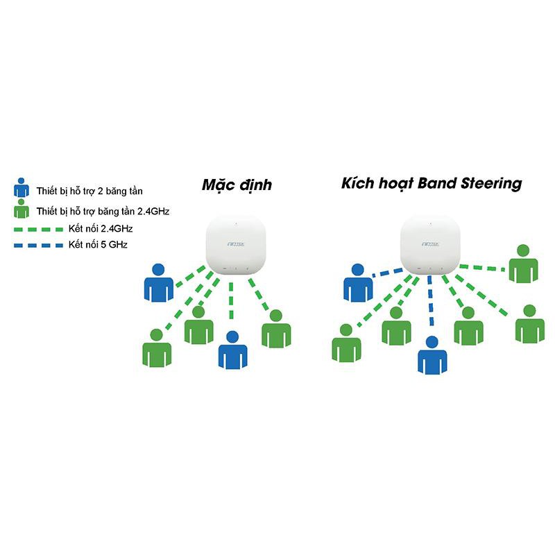 - Công nghệ Band Steering giúp chọn băng tần tối ưu cho client.