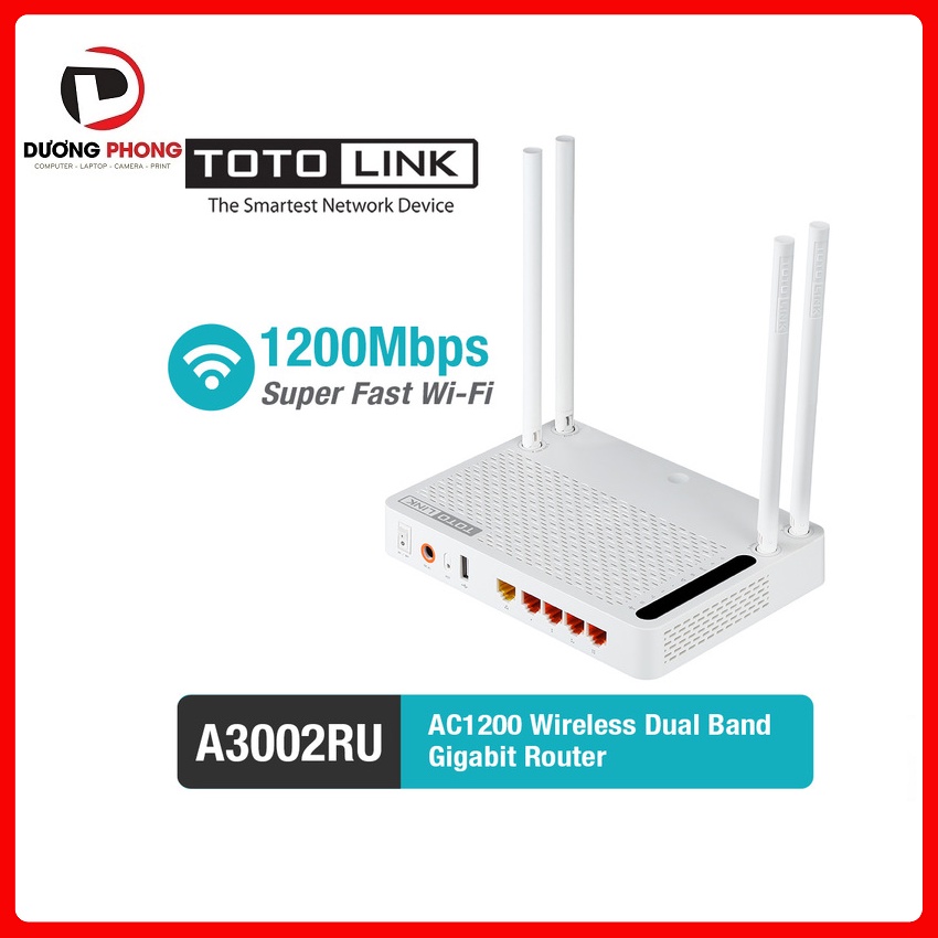 Máy tính & Laptop > Thiết Bị Mạng > Bộ Phát Wifi || Bộ phát Wi-Fi Totolink A3002RU Băng tần kép Gigabit AC1200 - BH24 ThángCòn hàng