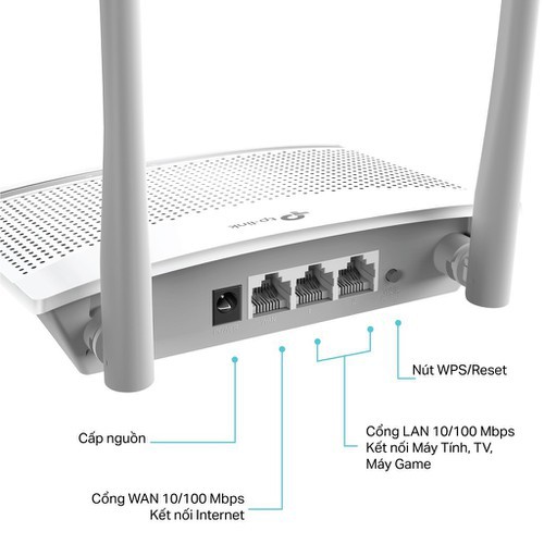 - Cổng kết nối: 1 cổng vào Internet (WAN) để lấy tín hiệu, 2 cổng ra (LAN) để gửi tín hiệu.
