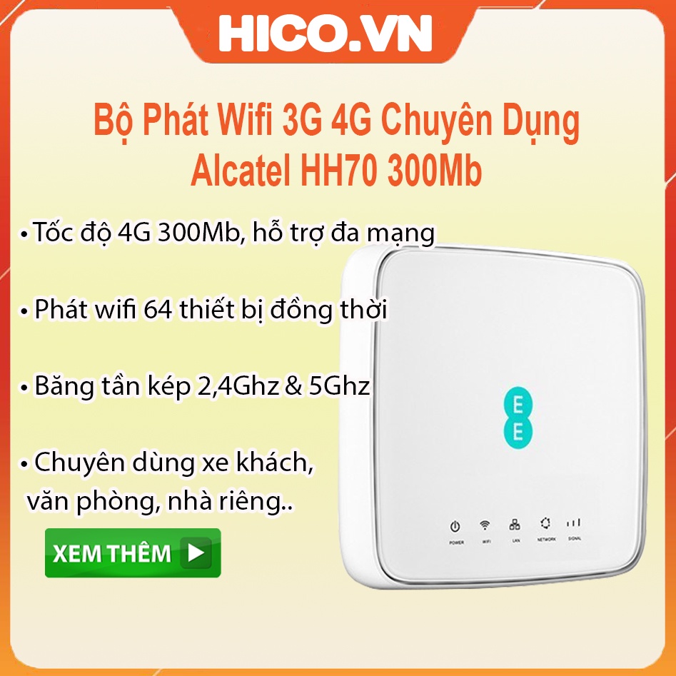 - Bộ phát Wifi 3G/4G Alcatel HH70 phù hợp lắp đặt cho xe ô tô, xe khách, xe du lịch, lắp đặt trên tàu thuyền, tàu du lịch, văn phòng, quán cafe, hộ gia đình, hệ thống camera,…