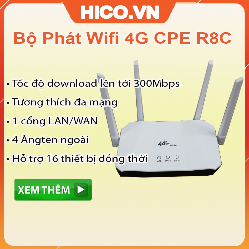 Giới thiệu [Mã ELHAMS5 giảm 6% đơn 300K] Bộ Phát Wifi 4G CPE R8C - Tốc Độ 300Mbps - Hỗ Trợ 16 User - 1 Cổng LAN - TRẮNG