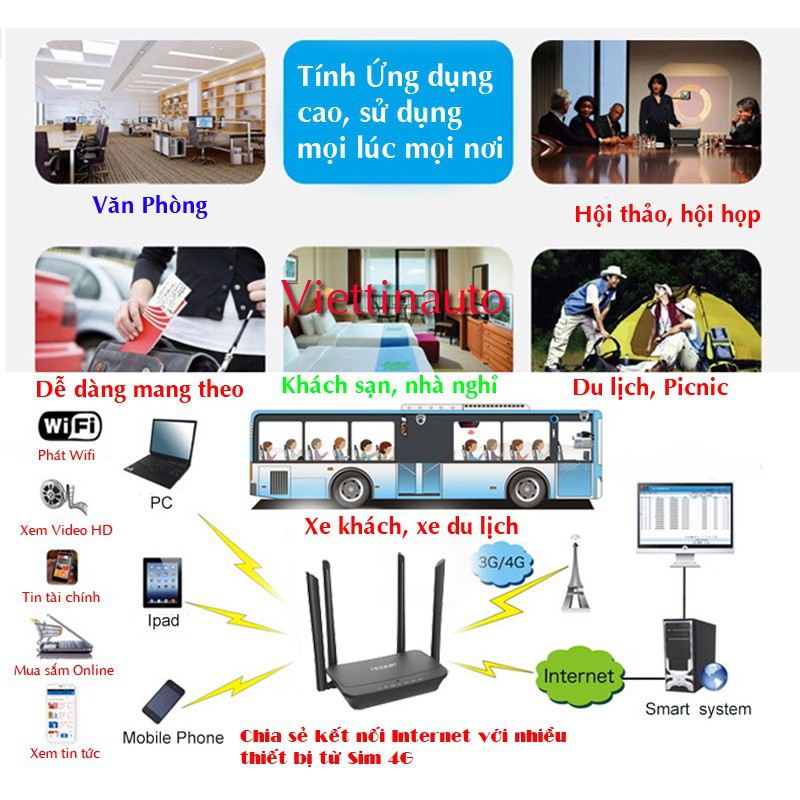 - Tương thích tất cả Sim 4G/5G của các nhà mạng. Chỉ việc gắn Sim vào là chạy.