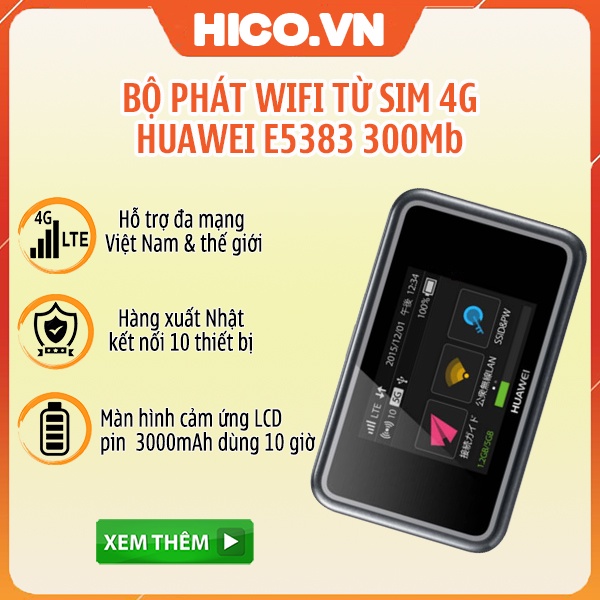 Bộ phát wifi 4g huawei e3583 tốc độ cao lên đến 300Mps , màn hình cảm ứng thông minh tiện ích , hàng xuất Nhật chất lượng cao.MÔ TẢ SẢN PHẨM