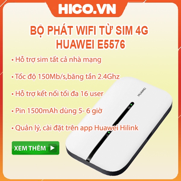Giới thiệu [Mã ELHAMS5 giảm 6% đơn 300K] Bộ Phát Wifi 4G Huawei E5576 150Mb Kết Nối 16 Thiêt Bị - Hàng Chính Hãng Huawei