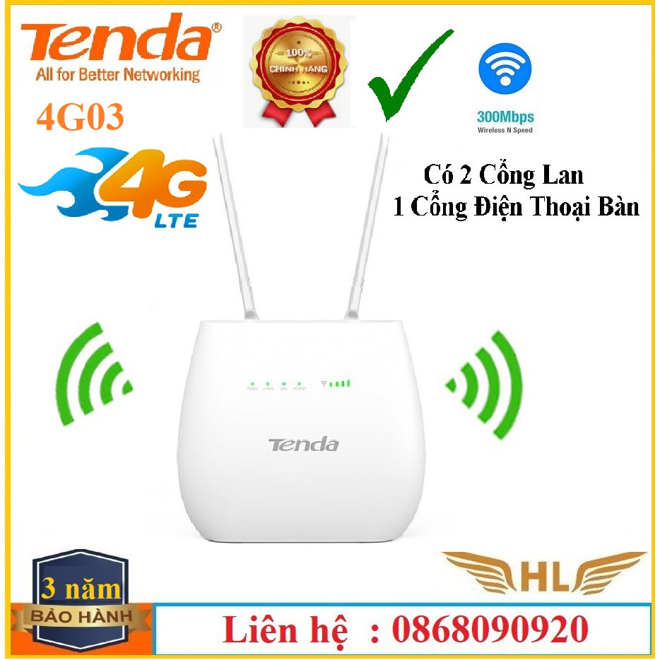 Máy tính & Laptop > Thiết Bị Mạng > Bộ Phát Wifi || Bộ Phát Wifi 4G LTE Chuẩn N300Mbps 2 Cổng Lan Tenda 4G680 Hoặc 4G03 không Râu hoặc 4G180 - Hàng Chính HãngCòn hàng
