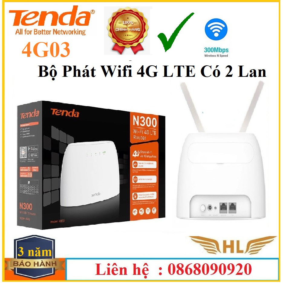 Máy tính & Laptop > Thiết Bị Mạng > Bộ Phát Wifi || Bộ Phát Wifi 4G Tenda 4G03 LTE Có Cổng Lan Chuẩn N300Mbps hoặc Tenda 4G180 Dùng Pin Chuẩn N150 - Hàng Chính HãngCòn hàng