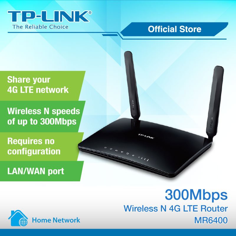 Máy tính & Laptop > Thiết Bị Mạng > Bộ Phát Wifi || Bộ phát Wifi 4G Tp-link MR6400 chuẩn N300 tốc độ 300Mbps. Bảo hành chính hãng 12 thángCòn hàng