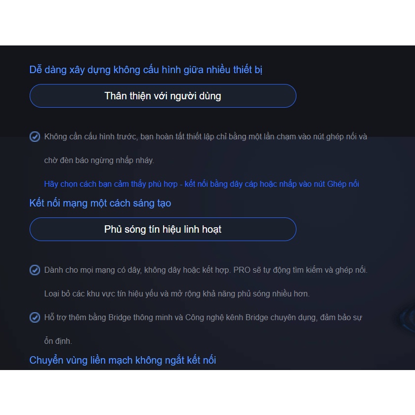 – Hỗ trợ Mesh nhiều bộ Wifi với nhau (đề xuất 3 thiết bị)