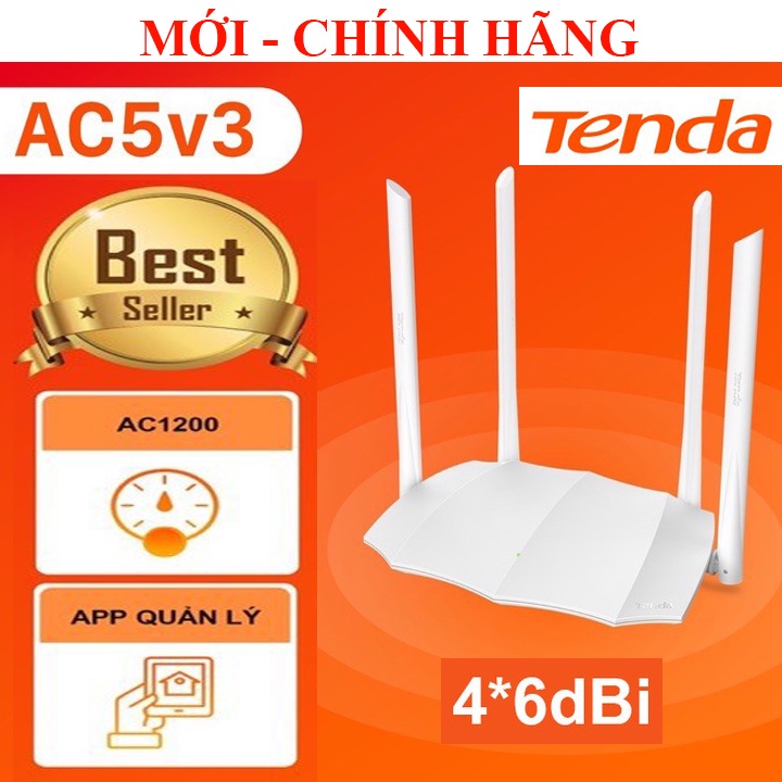 Máy tính & Laptop > Thiết Bị Mạng > Bộ Phát Wifi || [Mã 253ELSALE hoàn 7% đơn 300K] Bộ phát Wifi AC 1200Mbps Dual Band 5GHz & 2.4GHz Tenda AC5 V3Còn hàng