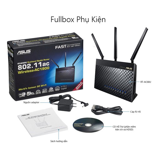 Máy tính & Laptop > Thiết Bị Mạng > Bộ Phát Wifi || [Mã ELMALL1TR giảm 5% đơn 3TR] Bộ Phát Wifi AiMesh Asus RT-AC68U Băng Tần Kép AC1900 - Hàng Chính HãngCòn hàng