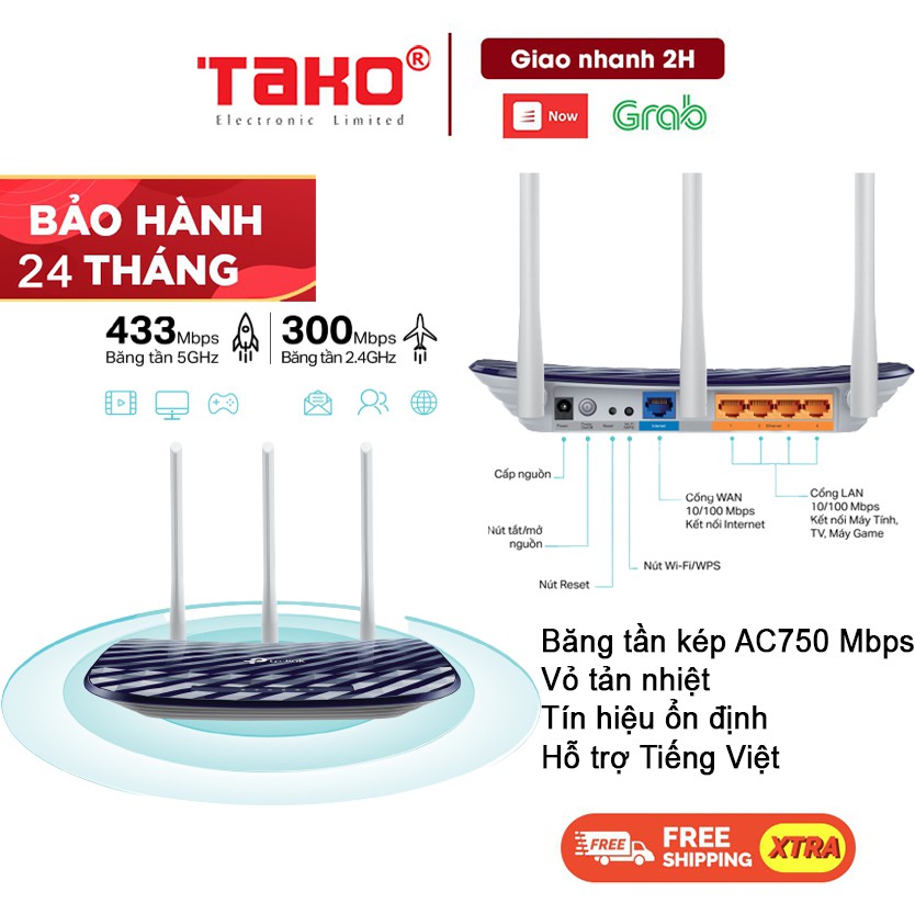 Bộ phát wifi Archer C20 AC750 Router băng tần kép. Chính hãng, BH 24 tháng