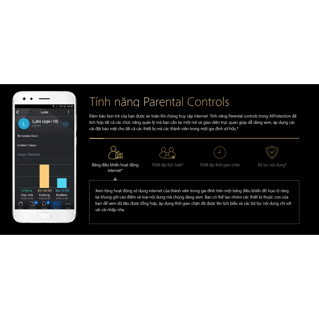 📌 Tính năng nổi bật: Parental control, AiProtection, Adaptive QoS