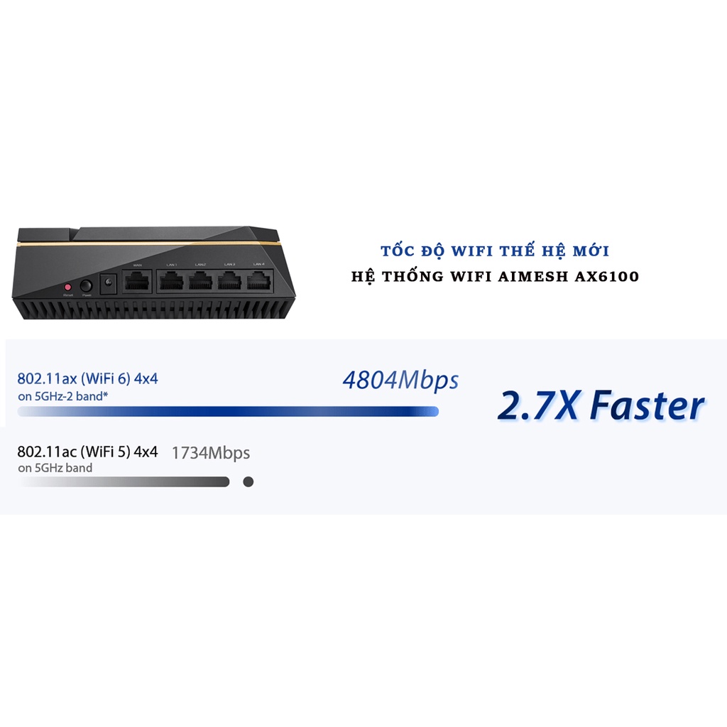 📌 3 băng tần bao gồm 2.4Ghz:400Mbps + 5GHz: 867Mbps + 5GHz: 4804Mbps