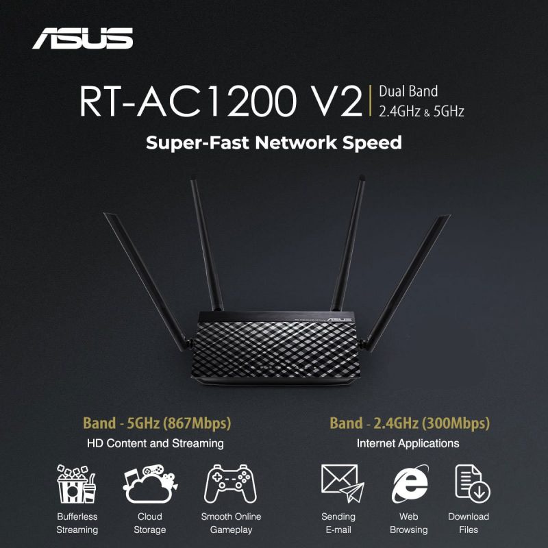 📍 Bộ phát wifi ASUS RT-AC1200-V2 - Bộ định tuyến router băng tần kép AC1200 chức năng Kiểm soát phụ huynh📌 Router ASUS Chuẩn AC1200 RT-AC1200-V2
