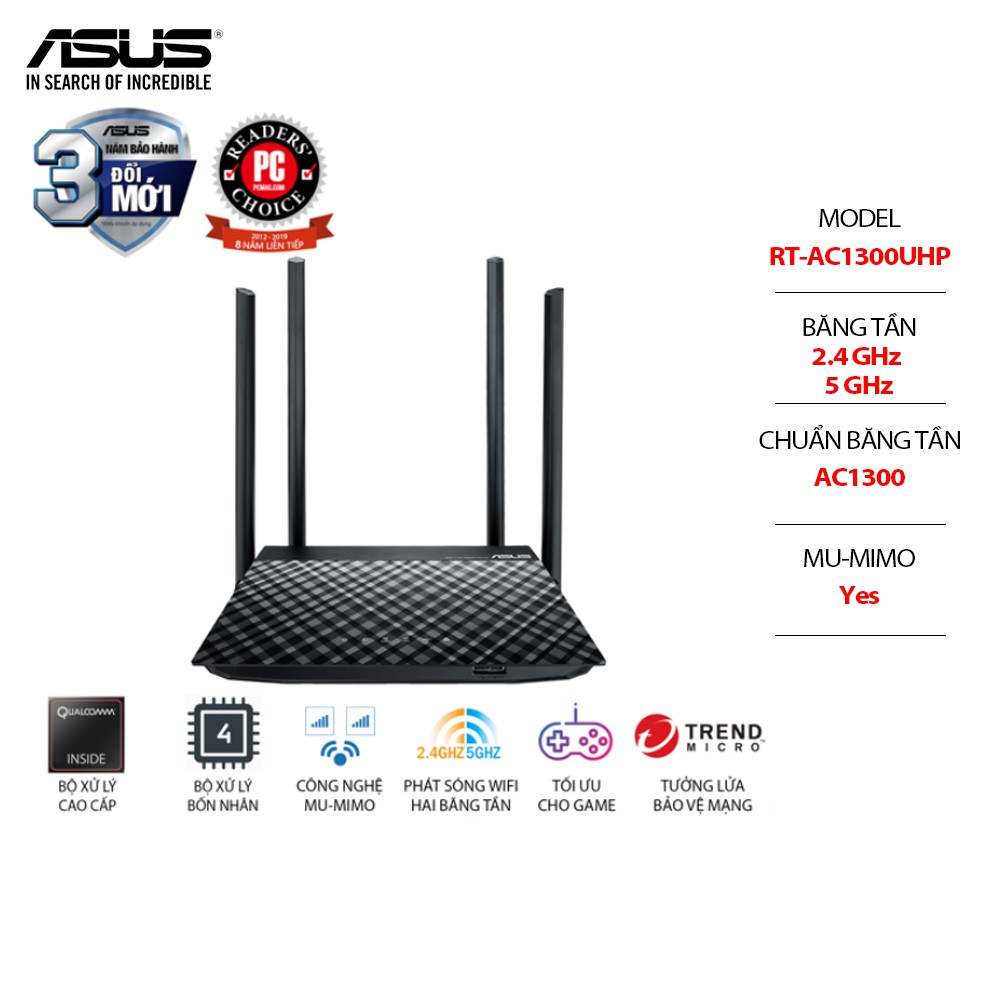 Máy tính & Laptop > Thiết Bị Mạng > Bộ Phát Wifi || Bộ Phát Wifi ASUS RT-AC1300UHP (Dũng Sĩ Xuyên Tường),2 băng tần -Chính HãngCòn hàng
