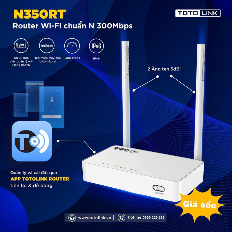 ✅ Bộ Phát Wi-Fi chuẩn N 300Mbps Totolink N350RT 4 cổng LAN:
