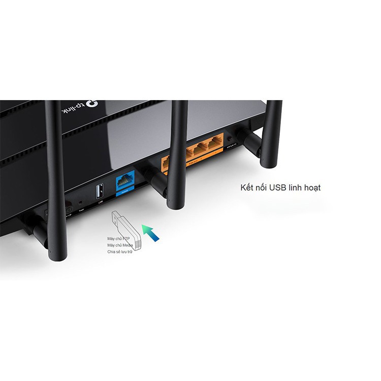 Cổng USB 2.0 giúp cho Archer C7 trở thành một gateway thực sự hiệu quả. Chia sẻ ổ đĩa cứng đầy đủ phương tiện thông qua mạng gia đình của bạn hoặc qua máy chủ ftp bất cứ khi nào bạn vắng mặt.