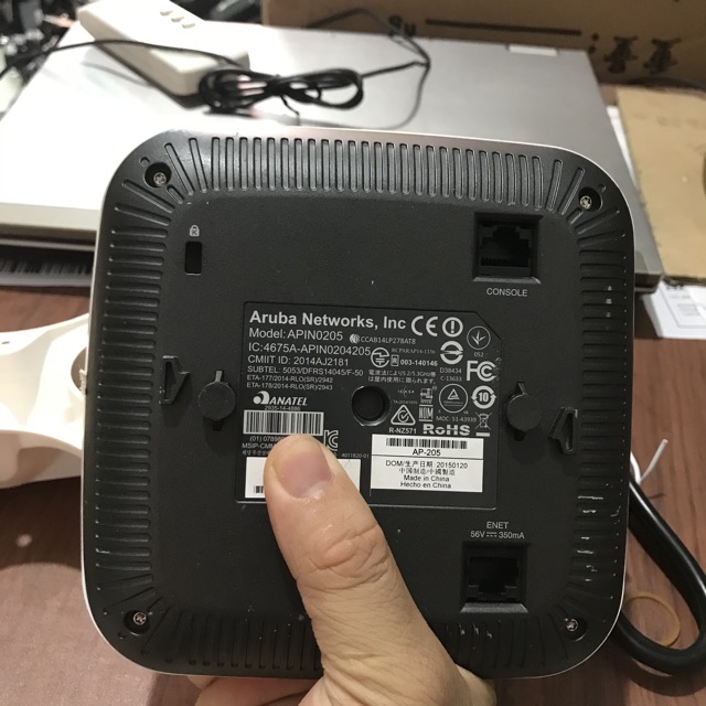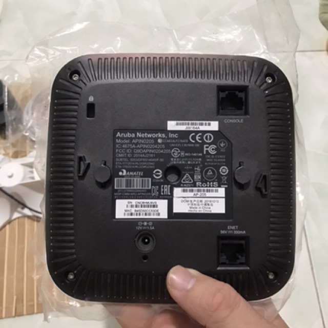 Bán aruba APIN0205 (AP 205 ) hàng qua sử dụng , đẹp, có chân đế, nguồn DC 12V-1.5A (tặng cáp Lan 1.5m ). Giá 890000 vnđWireless Access Point hoạt động theo chuẩn A/B/G/N/AC 2.4GHz và 5GHz, cho tốc độ wifi lên đến 300Mbps đối với sóng 2.4GHz và 867Mbps đối với sóng 5GHz, cổng kết nối LAN 1GB hỗ trợ PoE, cổng console RJ45.