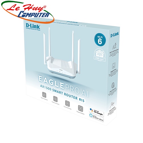 Bộ Phát Wifi DLink R15 AX1500 WiFi 6 Eagle PRO AI 2 Băng Tần