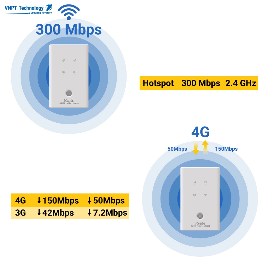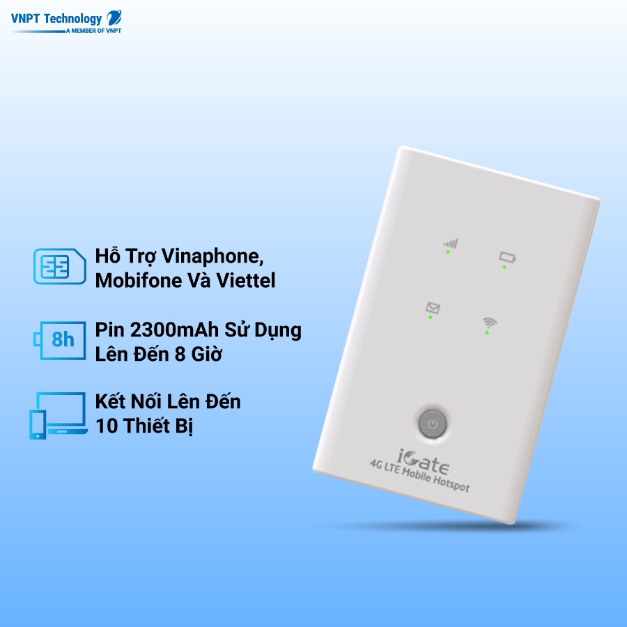 Giới thiệu Bộ Phát Wifi Di Động VNPT Technology 3G/4G LTE Mobile Hotspot 150Mbps Pin sạc 2300mAh iGate MR4G-11D