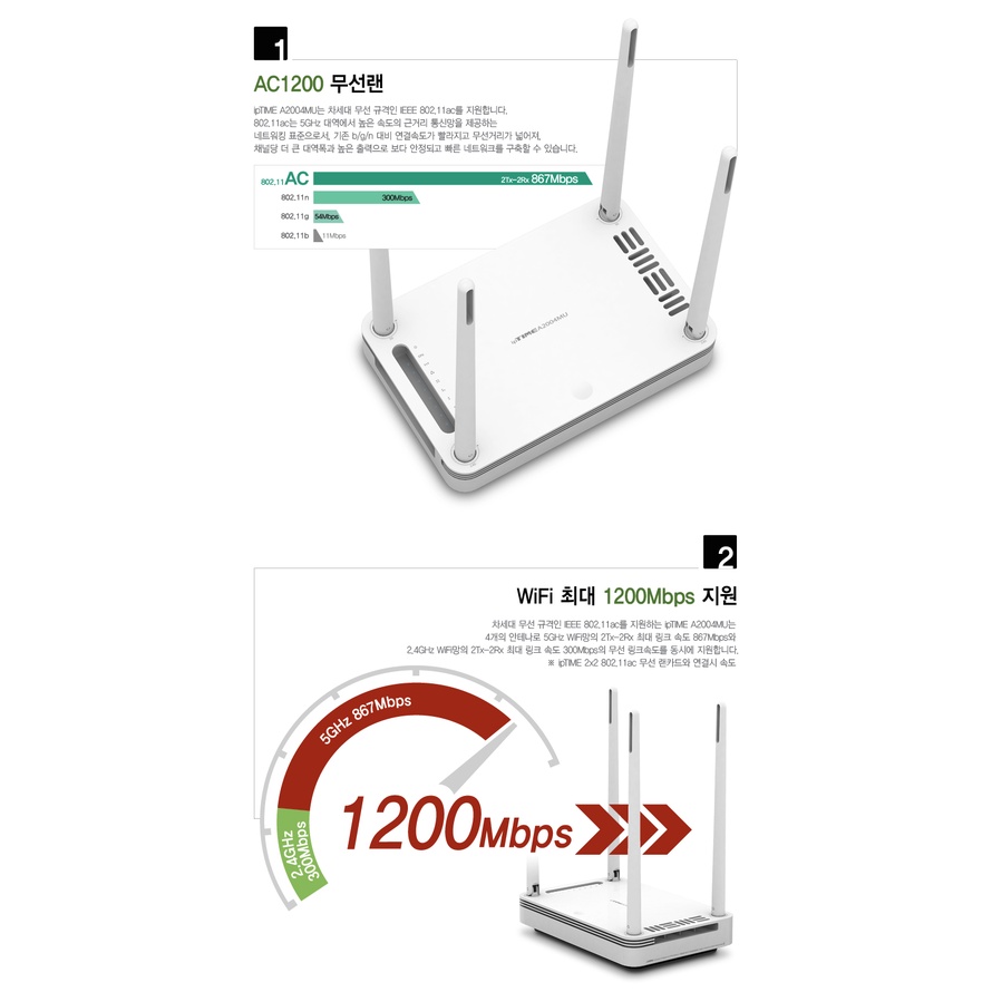 Bộ phát wifi EFM ipTIME A2004MUWired/Wireless / Gigabit / AC1200(Wi-Fi 5) / Maximum wireless speed: 867Mbps / Router type / Power plug type / Realtek RTL8197F / 1 GHz / RAM: 64MB / FLASH: 8MB / WAN: 1 port (Gigabit) / LAN: 4 Port (Gigabit) / Dual Band / Antenna: 4 / Mesh / MU-MIMO / IPTV Support / DDNS / WOL / Mobile Management Application / VPN / QoS / Beamforming / Multi SSID / Mobile UI / Wireless Agent / Wired Agent / Free 2 years / WAVE 2